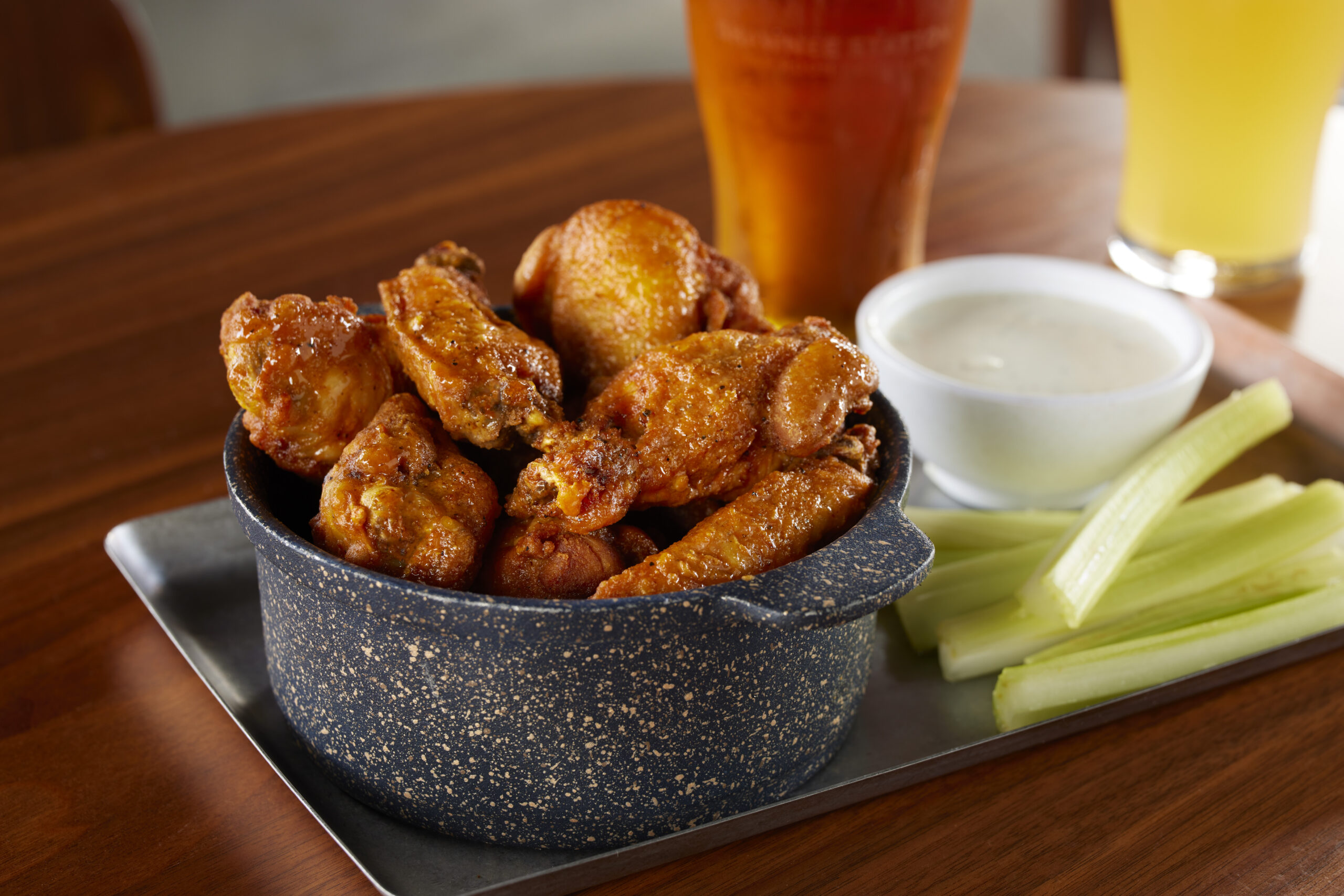 One pound, sous vide, fried crispy, blue cheese dressing.