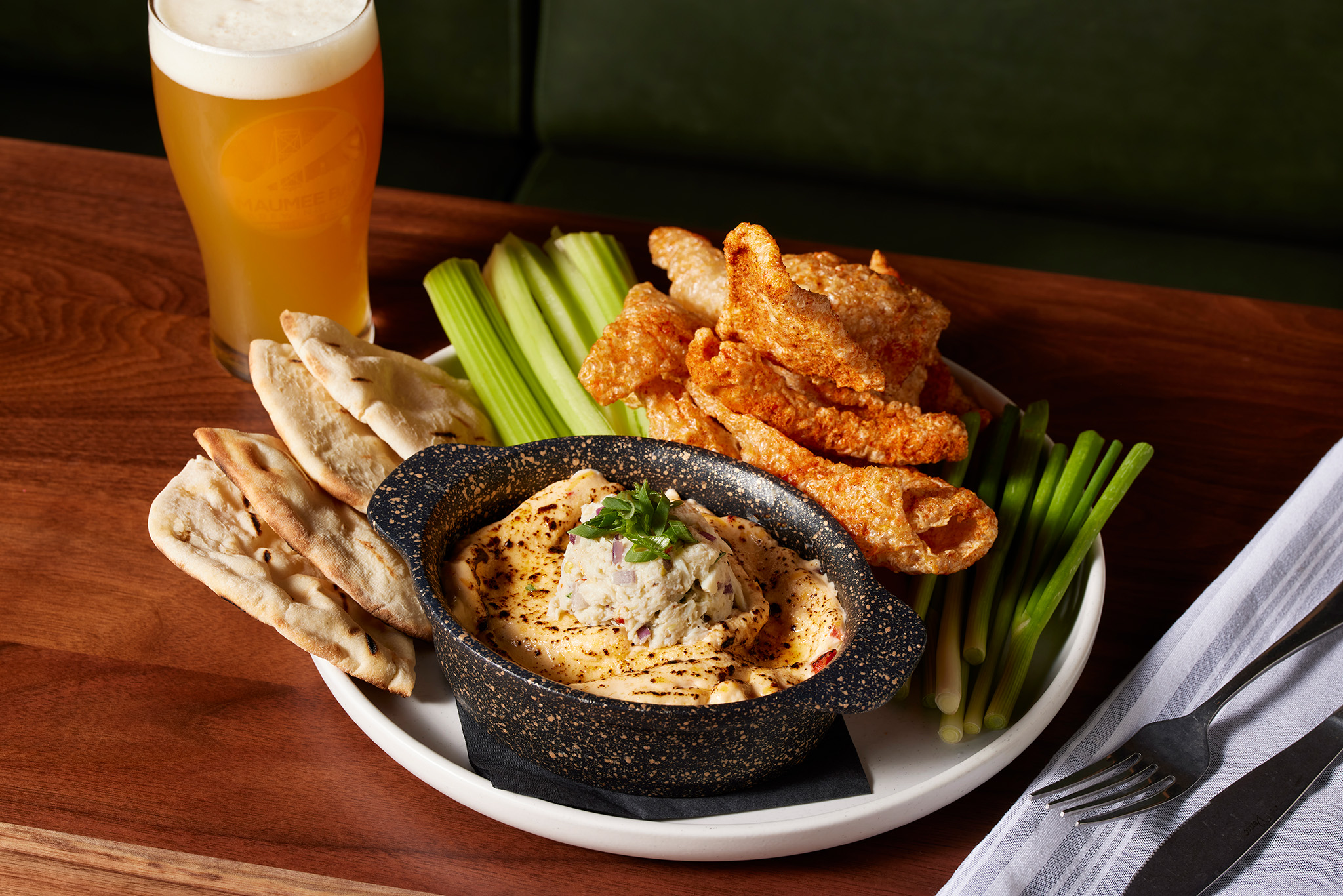 House pork rinds, naan, cucumber, celery